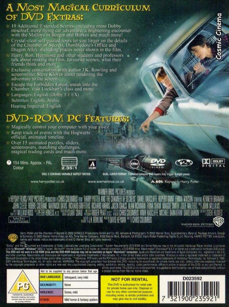-Se eliminó de la película una toma de Harry y Ron deslizándose hacia la Cámara de los Secretos. Esta toma es de un anuncio de televisión.