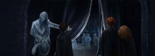 Cuando Harry va a escribir en el diario le pide a una fantasma que si le puede dejar solo.