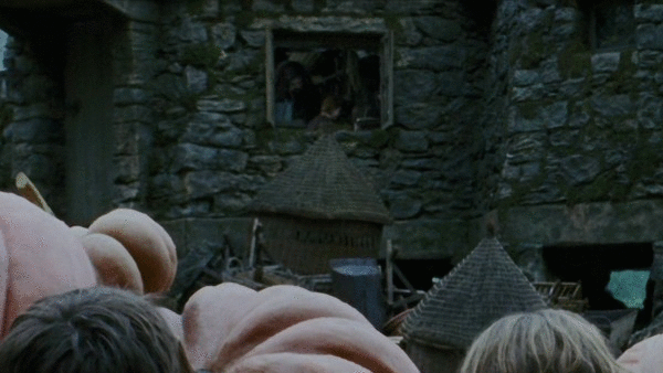 Harry y Hermione retroceden en el tiempo usando el Giratiempo. Se dirigen al huerto de calabazas fuera de la cabaña de Hagrid. Aquí ven cómo Ron y Hermione se abrazan torpemente. Harry lo encuentra divertido, pero Hermione analiza el abrazo con gran fascinación.