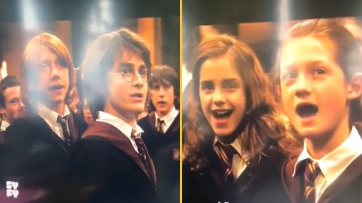 Cortaron una escena en la que los estudiantes de Gryffindor bailan entre ellos en la práctica de baile con la profesora McGonagall, como se ve en esta imagen.