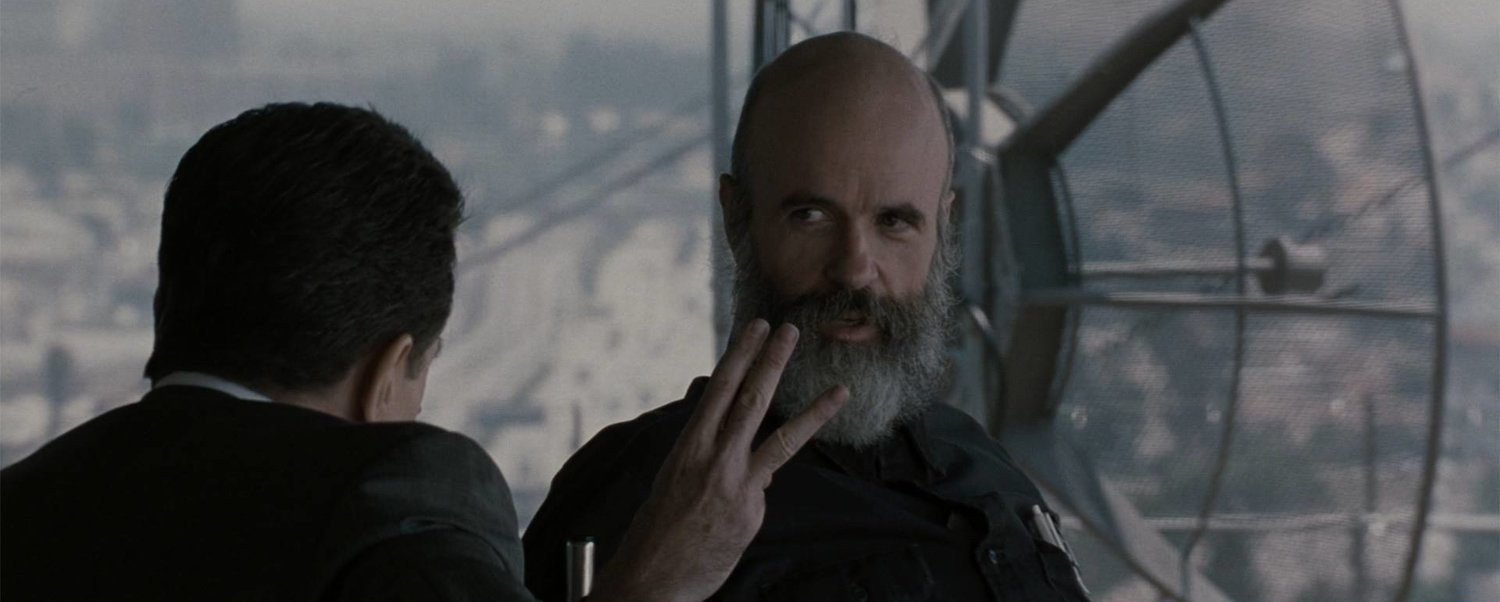 La policía de Los Ángeles se entera de la llegada de McCauley al hotel de Waingro por la alarma de incendios que este ultimo activa para tender una trampa a Waingro y avisan a Hanna.