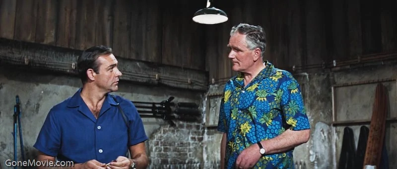Cuando se disponen a salir, Bond es atrapado por sicarios de Largo y obligado a ir con Volpe a casa de Largo, ambos se habian vestido muy rapido y no habian visto el arma del otro.