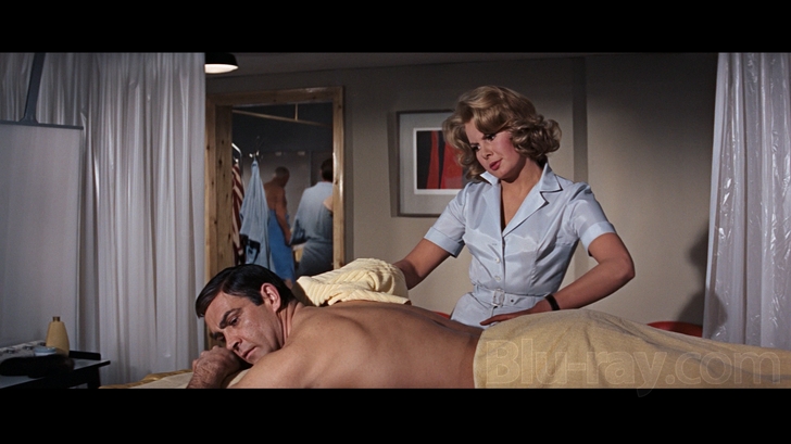 Bond se cuela en la habitación de Lippi sin encontrar nada, pero es visto por el hombre de la cara vendada. Siendo Bond salvado por Fearing que llega justo a tiempo, aunque antes de que terminara su tratamiento. Es seducida por Bond y acaban haciendolo en la suana.